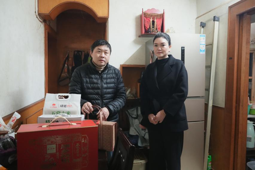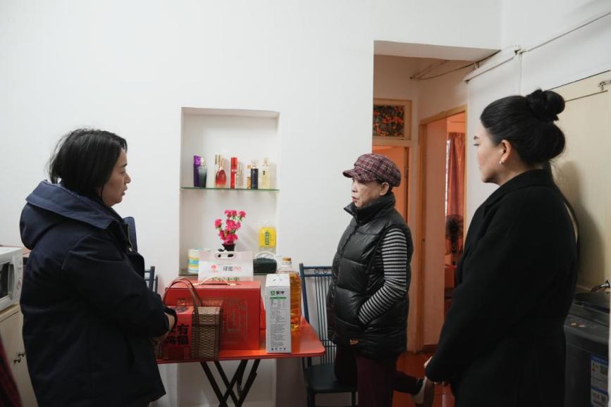 在物资捐赠后,世明综合管理部主任王丽亚与盐仓社区工作人员一同走访特困户家庭,送上精心筹备的新春物资。慰问过程中,她们与居民亲切交流,细心询问其身体状况、家庭收支及实际困难,认真倾听居民诉求,并叮嘱大家注意防寒保暖,做好健康防护,鼓励他们树立信心、积极生活。一句句亲切问候及暖心叮嘱,让困难居民真切感受到社会关怀与暖心帮扶。